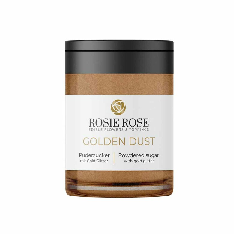 Ätbart guldglitter är ett fint florsocker med skimrande gyllene guldfärg. Perfekt för att pudra och dekorera desserter, kakor, bakverk och drycker. Korken har en inbyggd ströare, vilket gör dekoreringen enklare än någonsin. Ej lämplig för bakning.