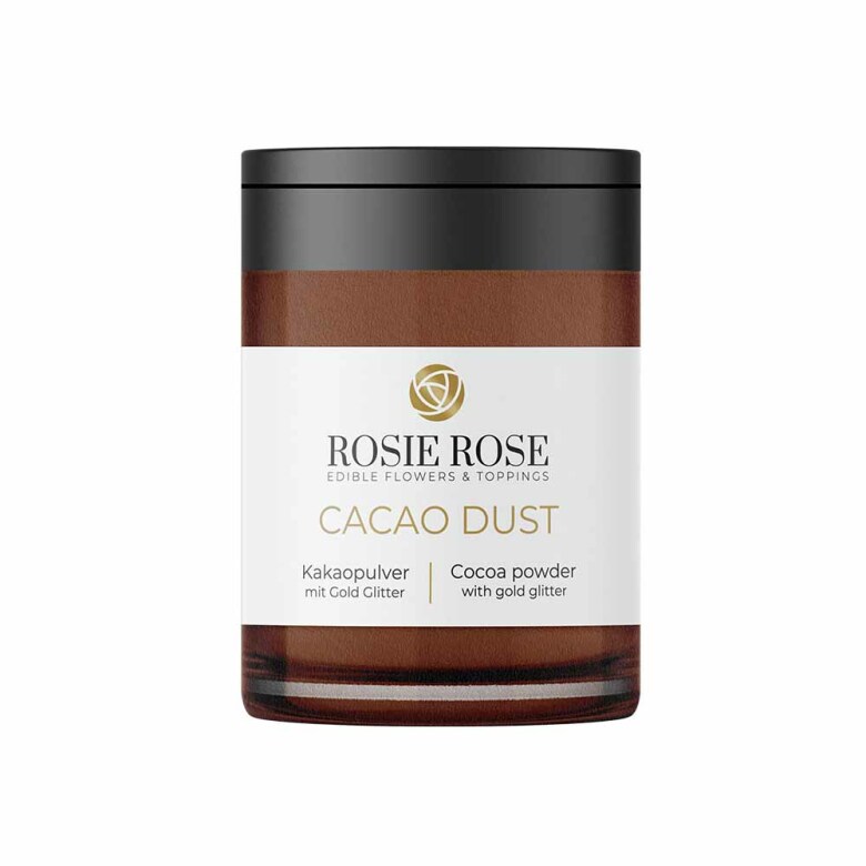 Kakaopulver med ätbart guldglitter. Perfekt att pudra och dekorera desserter, kakor, bakverk och dryck. Korken har en inbyggd ströare, vilket gör dekoreringen enklare än någonsin. Ej lämpligt för bakning.